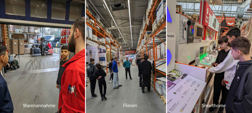Nach einer kleinen Einführung durch die Ausbildungsleitungen und Geschäftsführungen konnten wir in Gruppen die Abteilungen entdecken, die Warenannahme besuchen und die Produkte kennen lernen. Vor allem die Abteilungen mit den Dekorationsartikeln und den Elektrowerkzeugen wurde genau untersucht. Das waren abwechslungsreiche und spannende Stunden, in denen auch der Spaß nicht zu kurz kam!