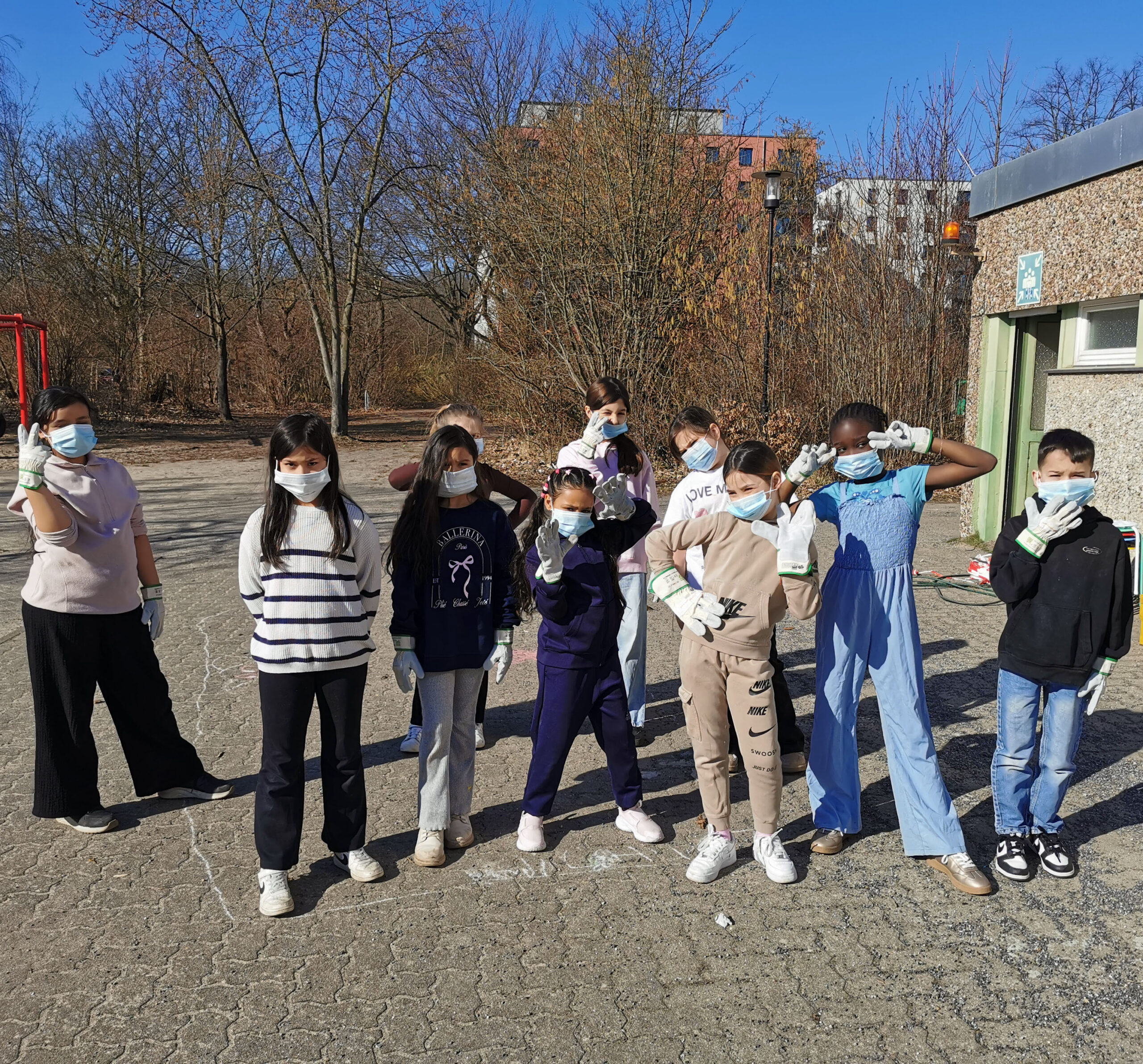 An einem sonnigen Mittwoch im März trafen sich 15 Kinder und 4 Erwachsene zum gemeinsamen Frühjahrsputz der Bewegten Pause. Ärmel...