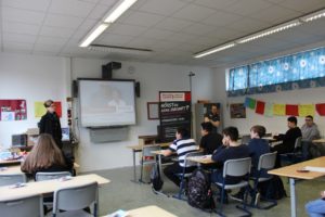 Los ging es bereits um 9 Uhr. Nach einer kurzen Begrüßung im Mehrzweckraum verteilten sich die Gruppen auf die verschiedenen Präsentationsräume. Dort stellten sowohl die Ausbilderinnen und Ausbilder als auch die Auszubildenden die verschiedenen Ausbildungs- und Karrieremöglichkeiten ihrer Unternehmen vor und informierten unsere Schülerinnen und Schüler über Anforderungen und Inhalte der verschiedenen Berufe. Über praxisnahe Übungen gaben sie Einblicke in Ausbildungsinhalte und beantworteten ausführlich die Fragen der Schülerinnen und Schüler.