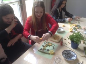 Das war das Motto eines Workshops im Kreativraum der Galerie im Körnerpark, bei dem die Schülerinnen und Schüler der 8/4 am Dienstag, 7.5., unter der Anleitung der Künstlerinnen Elisa Dierson und Steph Gillespie individuelle Kochbücher erstellten.