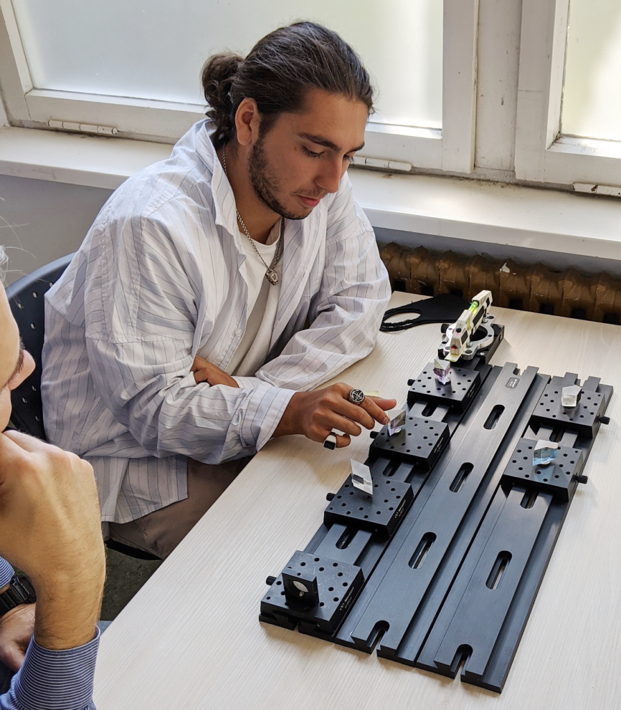 Mit einem Optikspiel konnten wir auch gleich unser Geschick beweisen, indem wir einen Laser von seinem Ausgangspunkt mithilfe von Glasprismen zu seinem Ziel leiteten. Wir erfuhren viel über technische Gläser, Halbleitertechnik, Satelliten und was die Mobiltelefone von Samsung mit alldem zu tun haben.