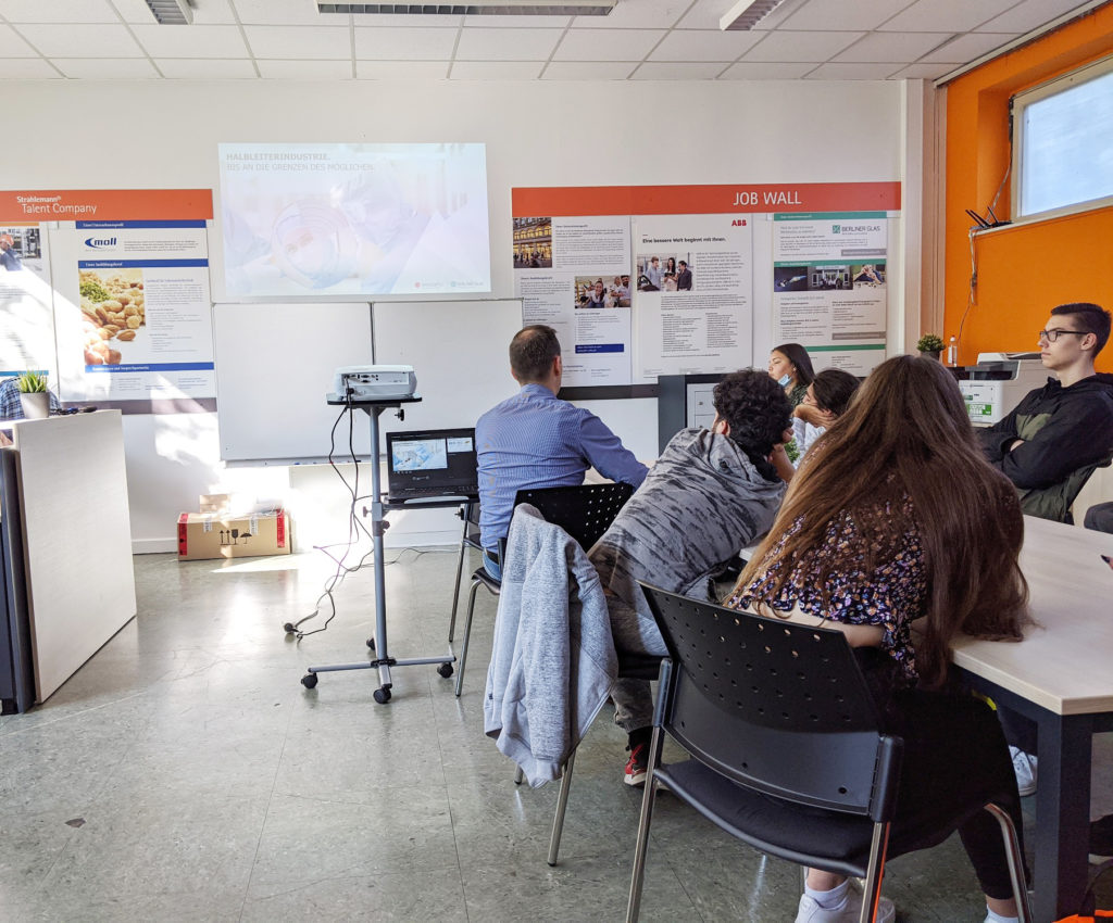 Am 14. und 15. September 2020 hatten wir die Berliner Glas Group zu Gast in der Talent Company. Während des Wahlpflichtkurses „Vertiefte Berufsorientierung“ für den 9. und 10. Jahrgang stellten Herr Dr. Kirchgatter und Frau Kusche das Unternehmen und die Ausbildungsmöglichkeiten bei Berliner Glas vor.