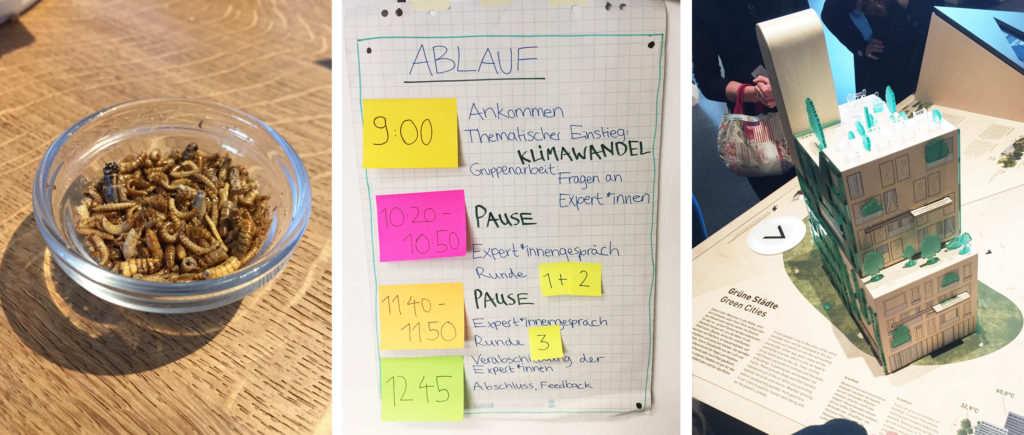 Der zweite Teil des Workshops führte unseren WPU-Kurs nach Berlin Mitte ins Futurium. Schon von außen wusste der Bau uns mit seiner modernen Architektur zu begeistern. Die Vorfreude sollte nicht enttäuscht werden. Das Augenmerk lag auf der großen Herausforderung, neue Technologien und Entwicklungen einzusetzen, um der vorherrschenden Problematik rund um die Themen Klima und Bevölkerungszuwachs gerecht zu werden. Auch an diesem Vormittag sollte es ein kulinarisches Highlight geben: im hauseigenen Restaurant wurden wir zum Abschluss zum vegetarischen Mittagessen eingeladen. Die Mutigsten trauten sich sogar, auf der Future-Food-Karte den proteinhaltigen Insekten-Snack zu bestellen. Hier gingen die Meinungen allerdings stark auseinander.