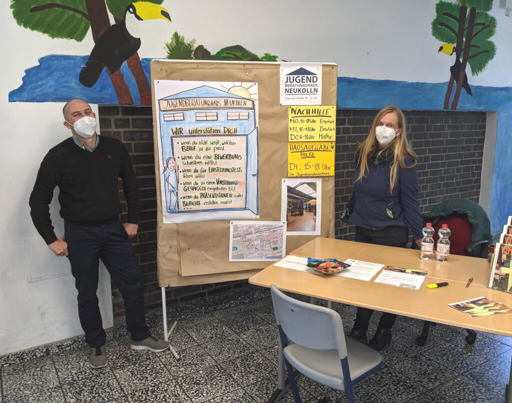 In der Mittelstufe nahmen auch Mitarbeitende des Jugendberatungshauses teil und alle hatten die Möglichkeit, sich zu Themen wie Bewerbungsunterstützung, MSA-Nachhilfe und Hausaufgabenunterstützung zu informieren.