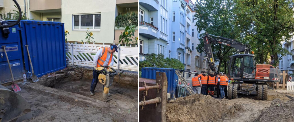 Morgens um 09.00 Uhr hatten die Schülerinnen und Schüler der Hermann-von-Helmholtz-Schule die Möglichkeit in Alt-Tempelhof eine Baustelle zu besuchen.Unser Kooperationspartner Frisch und Faust Tiefbau GmbH hatte zum Baustellentag eingeladen. Eine Stunde lang hatten wir die Möglichkeit, den Tiefbaufacharbeiterinnen, Rohrleitungsbauern und Kanalbauerinnen über die Schultern zu schauen. Auch Gespräche mit Ausbildern und Mitarbeitenden über Praktika und Ausbildungen waren möglich.