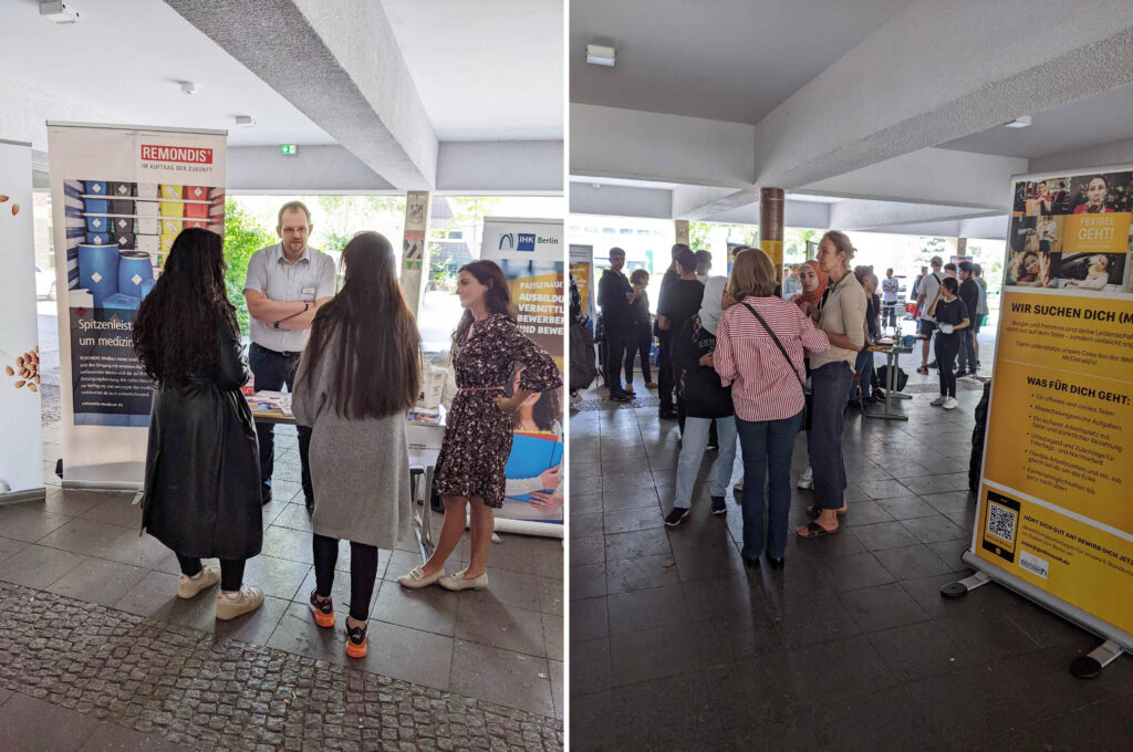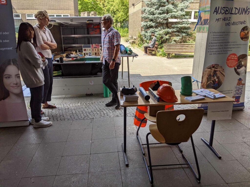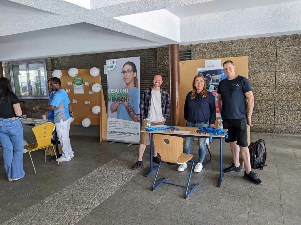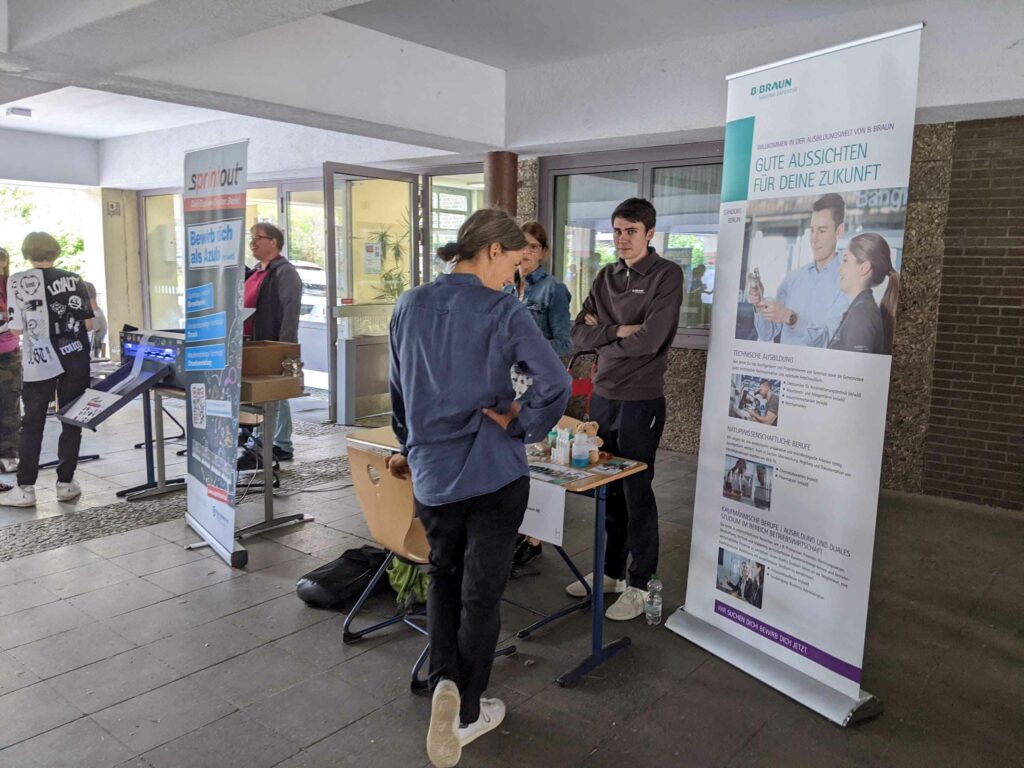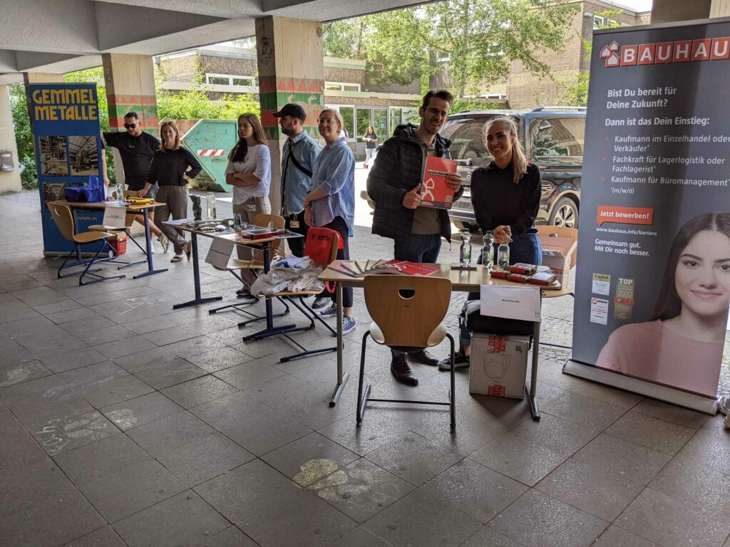 Am Dienstag, den 04. Juli 2023 haben sich 22 Unternehmen und Institutionen von 12:00 bis 14:00 Uhr Zeit genommen und ihre Stände auf unserem Schulhof unter der Aula aufgebaut. Von A bis Z war für uns alles dabei und die Schülerinnen und Schüler aller Jahrgänge hatten die Möglichkeit, sich auf die Schnelle über Praktika- und Ausbildungsplätze zu informieren, Gespräche mit den Ausbildungsverantwortlichen zu führen und noch schnell einen Job zu ergattern. Auch viele neue Unternehmen waren dabei und haben unsere Schule von der besten Seite kennenlernen können.