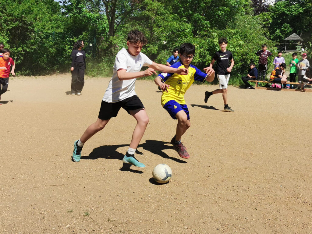 Am Mittwoch, den 17. Mai 2023 fand an der Grundstufe der Hermann-von-Helmholtz-Schule das alljährliche Fußballturnier statt. Es spielten die 4., 5, und 6. Klassen sowie die Willkommensklassen. In einer Gruppenphase wurden zunächst die vier besten Teams ermittelt. Hierbei qualifizierten sich die Klasse 5/1 und das Team der Willkommensklasse für das Spiel um Platz 3. Die Partie endete unentschieden, so dass zwei 3. Plätze vergeben wurden. Um den Sieg spielten in einem hart umkämpften Finale die Klassen 6/1 und 6/2. Lange stand es 0:0, doch 47 Sekunden vor dem Abpfiff gelang der 6/2 nach einer tollen Kombination aus dem Mittelfeld heraus der Siegtreffer. Somit ist die Klasse 6/2 der diesjährige Fußballmeister der Grundstufe.
