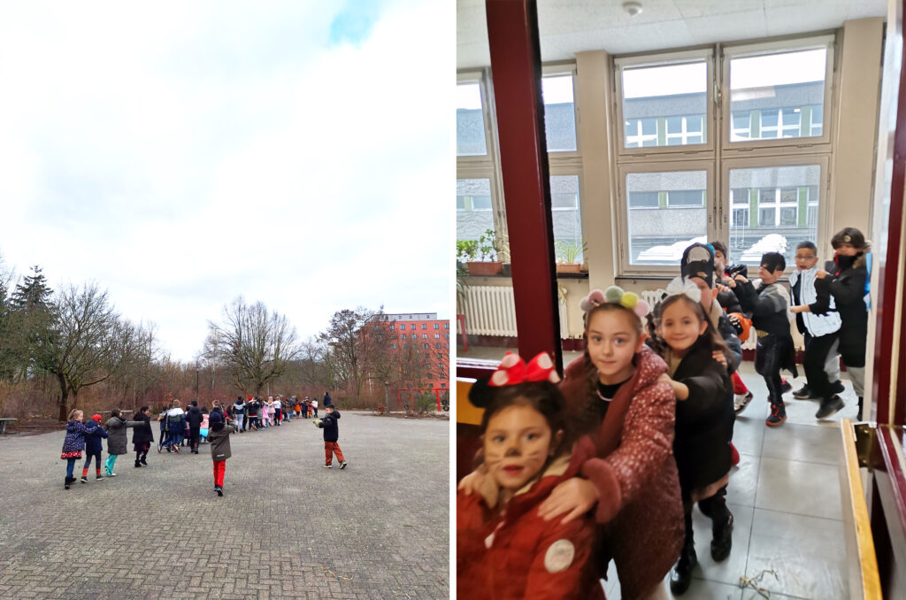 Am Faschingsdienstag haben viele Klassen der Grundstufe Fasching gefeiert: Die Kinder kamen in sehr fantasievollen Kostümen zur Schule und haben gebastelt, getanzt und gesungen. In einer immer länger werdenden Polonäse (es schlossen sich immer mehr Klassen an) ging es schließlich durch das Schulgebäude auf den Schulhof. Was für ein toller, närrischer Tag!