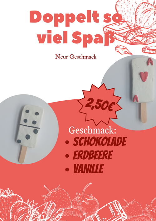 Mit handlichem Eis aus Ton und digitalen Werbeplakaten beschäftigten sich die Schülerinnen und Schüler des Wahlpflichtfachs Kunst des 7. Jahrgangs mit großer Wissbegierde über eine längere Unterrichtseinheit.