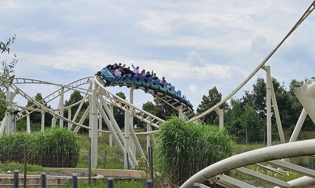 Anfang Juli ging es mit dem gesamten Jahrgang im Doppeldecker zum Vergnügungspark Belantis bei Leipzig. Wir hatten Glück mit dem Wetter und der Park war nicht zu stark besucht, so dass alle Schülerinnen und Schüler die Fahrgeschäfte ausgiebig nutzen konnten. Es gab zahlreiche Fahrten in Achterbahnfahrten, Wasserrutschen und Karussells, welche von allen Jugendlichen problemlos und (fast) ohne Anzeichen von Übelkeit überstanden wurden. Von Seiten der Lehrkräfte war das nicht ganz so 😉.