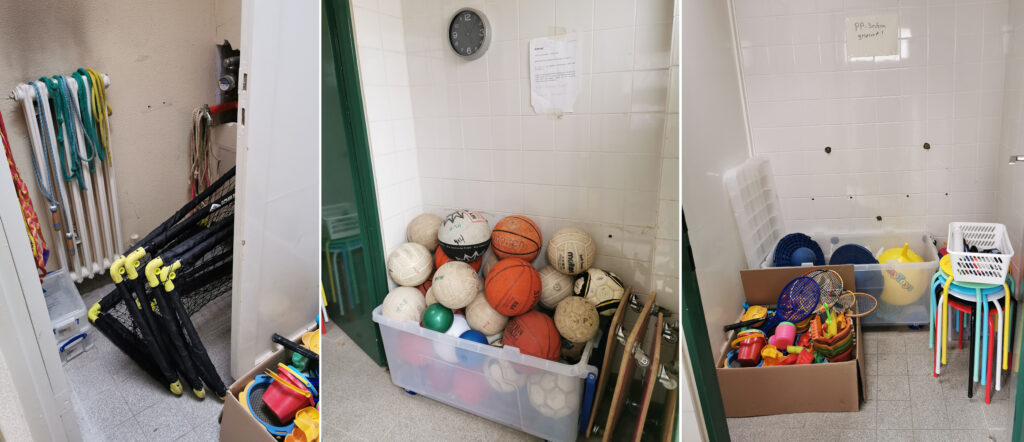 Als nächstes wurden beide Räume neu eingerichtet: In einen Raum ist die Bewegte Pause eingezogen. Alle Sachen haben jetzt ihren Platz und sind viel übersichtlicher geordnet.