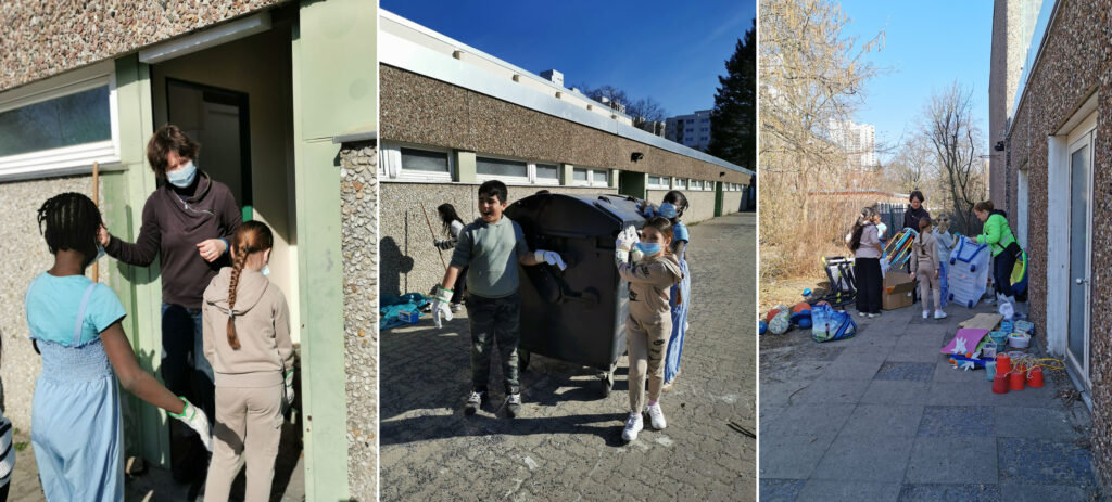 An einem sonnigen Mittwoch im März trafen sich 15 Kinder und 4 Erwachsene zum gemeinsamen Frühjahrsputz der Bewegten Pause. Ärmel hoch und es ging los!