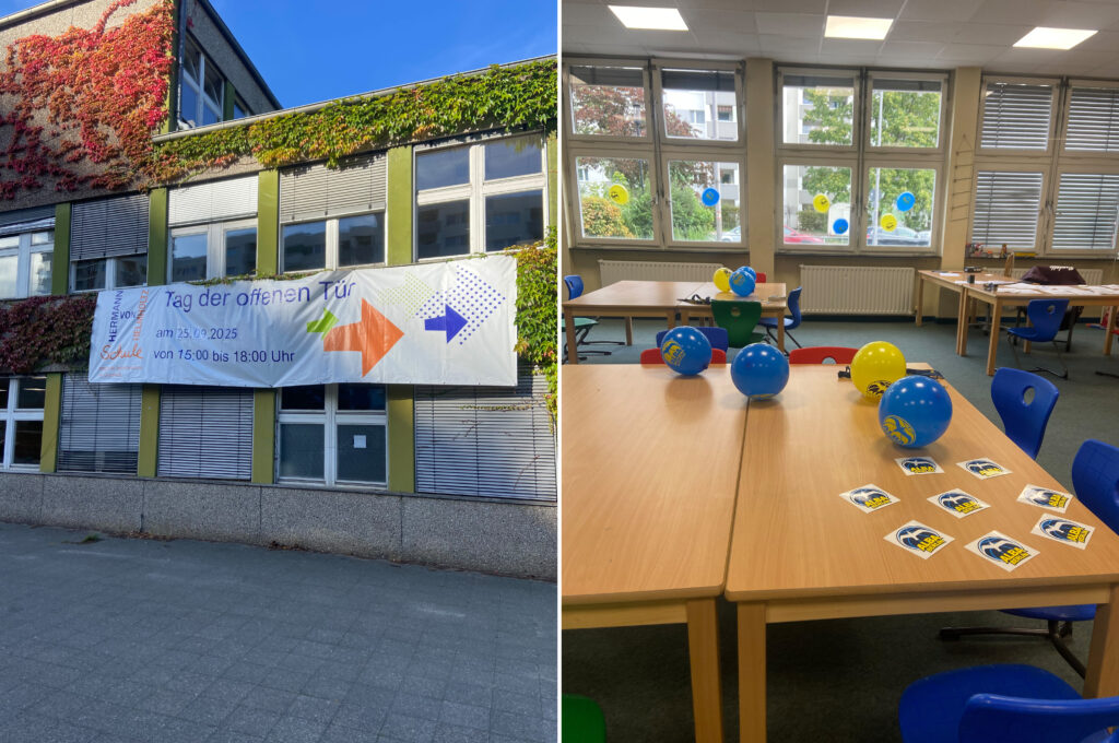 Am Donnerstag, den 25.09.2025 wird die Grundstufe der Hermann-von-Helmholtz-Schule von 15:00 Uhr bis 18:00 Uhr ihre Türen öffnen. An diesem Tagen können Sie unsere Lehrkräfte, Erzieherinnen und Erzieher kennenlernen. Unsere Schülerinnen und Schüler der 6. Klassen zeigen Ihnen gerne die Fachräume, Klassenräume und Lernmittel. In verschiedenen Räumen kann sich Ihr Kind beim Mitmachunterricht schon wie ein Schulkind fühlen.
